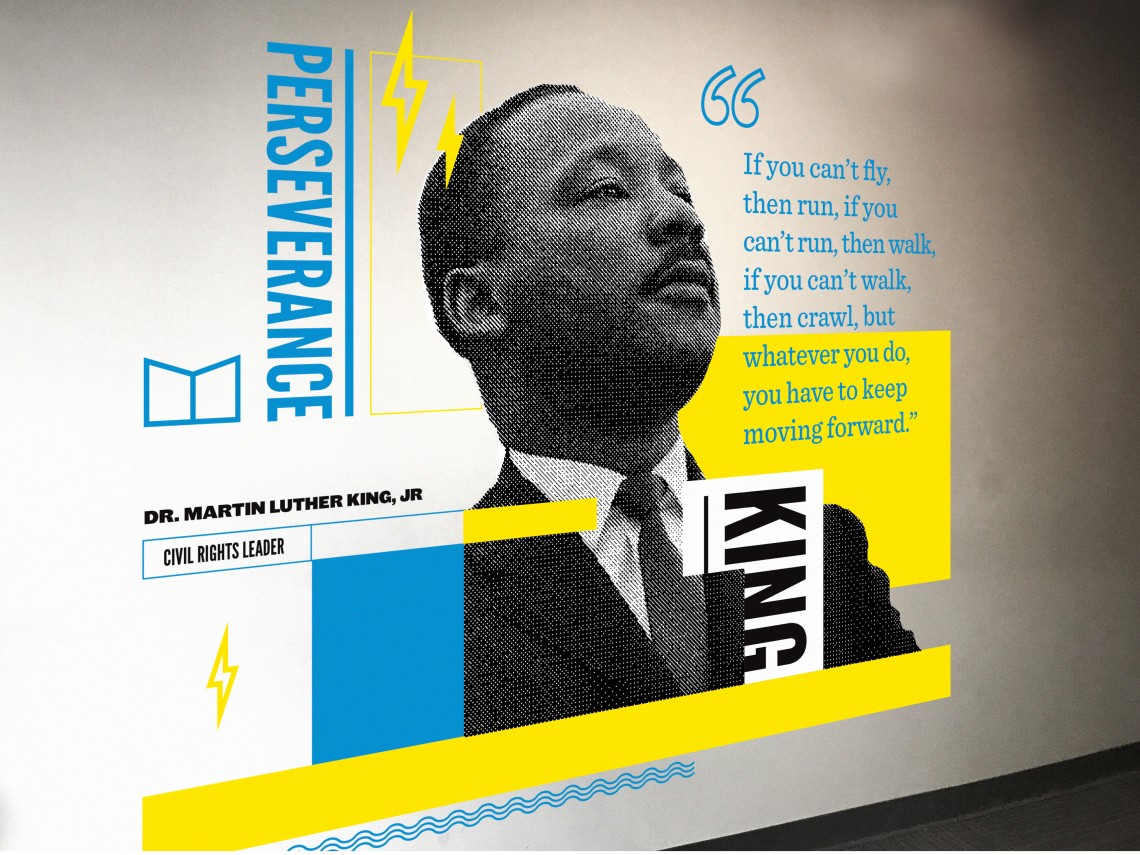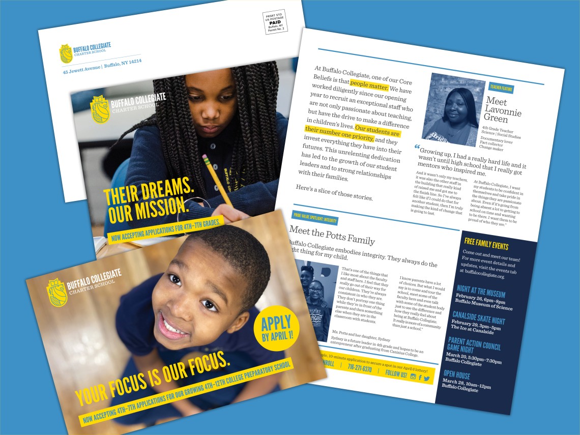 Employing a mix of outdoor, direct, and social media advertising, the White Bike team helped Buffalo Collegiate launch a targeted outreach campaign in select zip codes leading up to the live lottery in April. And as part of the effort, we worked with the Buffalo Collegiate leadership to identify opportunities to make impressions on students, parents, and teachers in high-visibility areas of the school, incorporating quotes from icons like Dr. Martin Luther King and education advocate Rita Pierson.